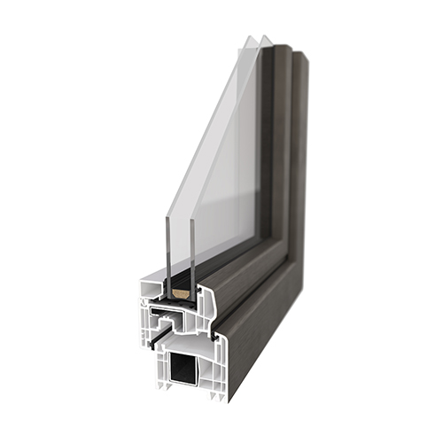 – Ouvrant design 80 mm (6 chambres) + dormant 74 mm (6 chambres).
