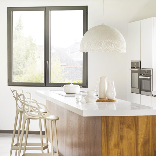 Fenêtres aluminium Frappe Alure, l’alliance parfaite du design et des hautes performances. Profil Schuco 75mm avec noyau thermique épaissi, ouvrant caché pour 20% de luminosité en plus et triple barrière d’étanchéité. Le tout dans un style galbé ou cubique à votre convenance.